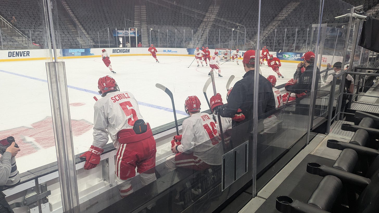 The third-year head coach of the Badgers admitted that, as recently as four weeks ago, he was unsure his team would be in the Frozen Four. But they “found a way to get here,” and Schulz, similarly, worked with training staff to get back on the ice despite the odds.