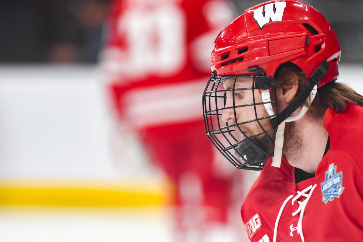 Wisconsin Badgers Freshman Forward Grady Deering skates of the ice after the first period. Photo Credit: AMF Photography