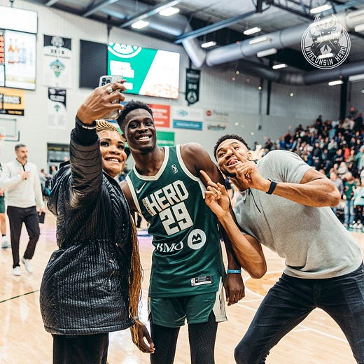Giannis and Thanasis are not the only members of the Bucks organization this year. Alex Antetokounmpo is a member of the Bucks’ G-League affiliate team the Wisconsin Herd. Giannis and his mother, Veronica, were both inside Oshkosh Arena last night as the Herd defeated the Detroit Pistons-affiliated Motor City Cruise.