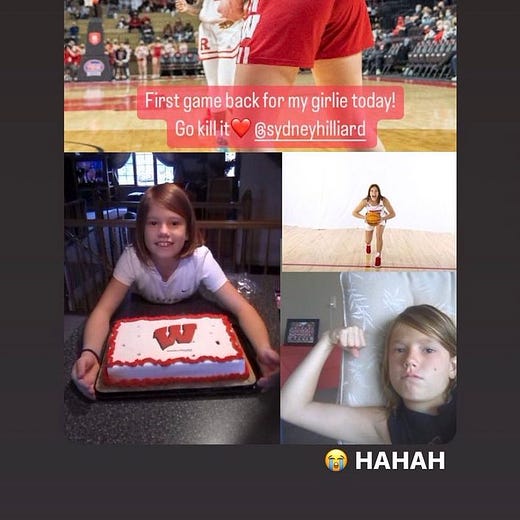Wisconsin announced on February 3rd of this year that Sydney Hilliard would be taking a leave of absence from the team to attend to a personal matter. She has not yet played in a game this season for Wisconsin, but per screenshots from her instagram story, she may be making her debut tonight. Hilliard has been an integral part of the Badgers’ scoring efforts since arriving on campus. She recorded the third-most points per game on the team her freshman season, led the team in scoring her sophomore season, and ranked second in points per game her junior season.