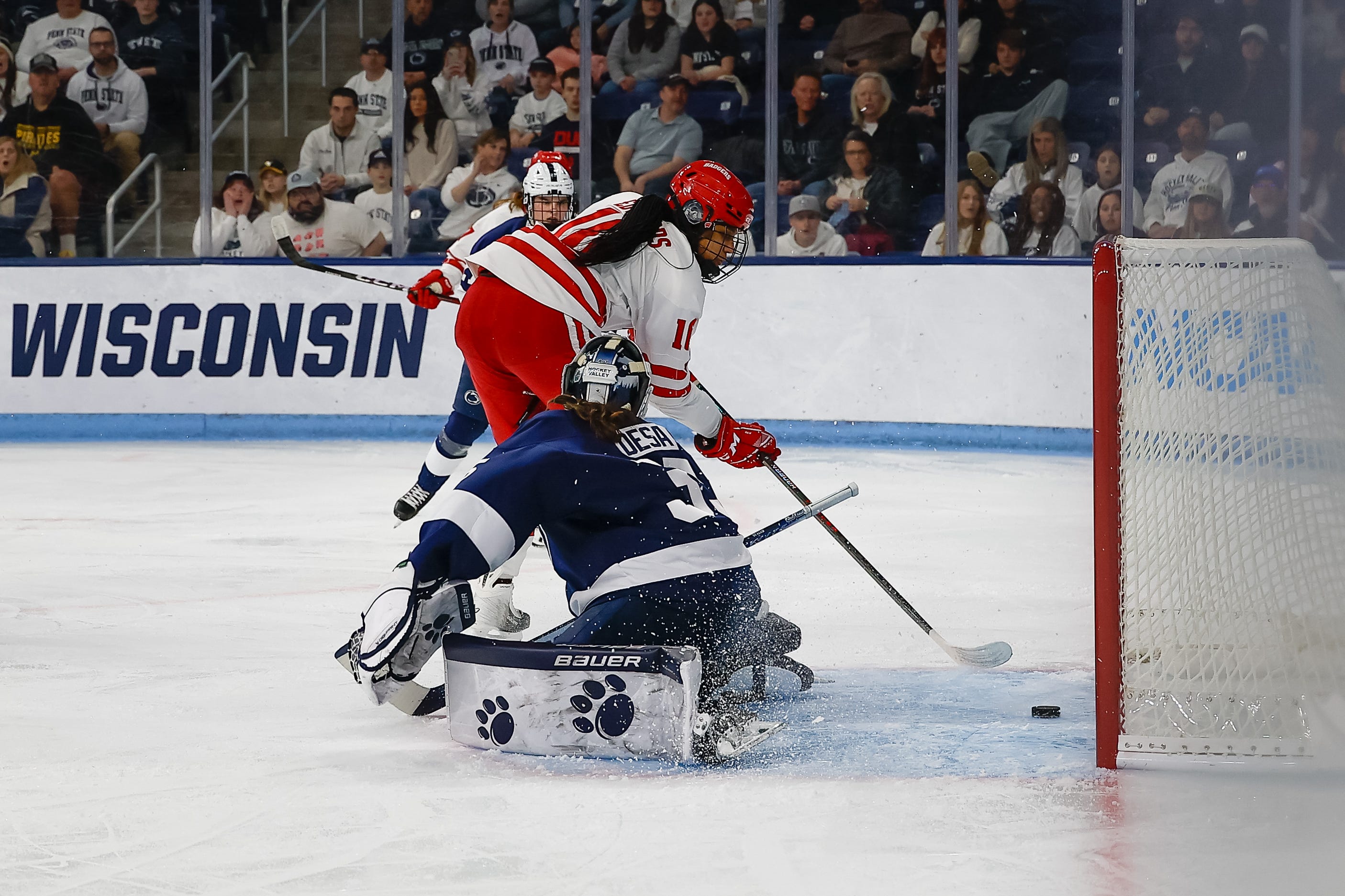 University Park, PA — In front of the largest crowd in Frozen Four history, the Wisconsin Badgers and Penn State Nittany Lions put on a show. In an overtime thriller, Penn State pushed Wisconsin women’s hockey to the brink, until the most-likely hero set a date between the Badgers and Ohio State Buckeyes in the national title game for the fourth-straight year.
