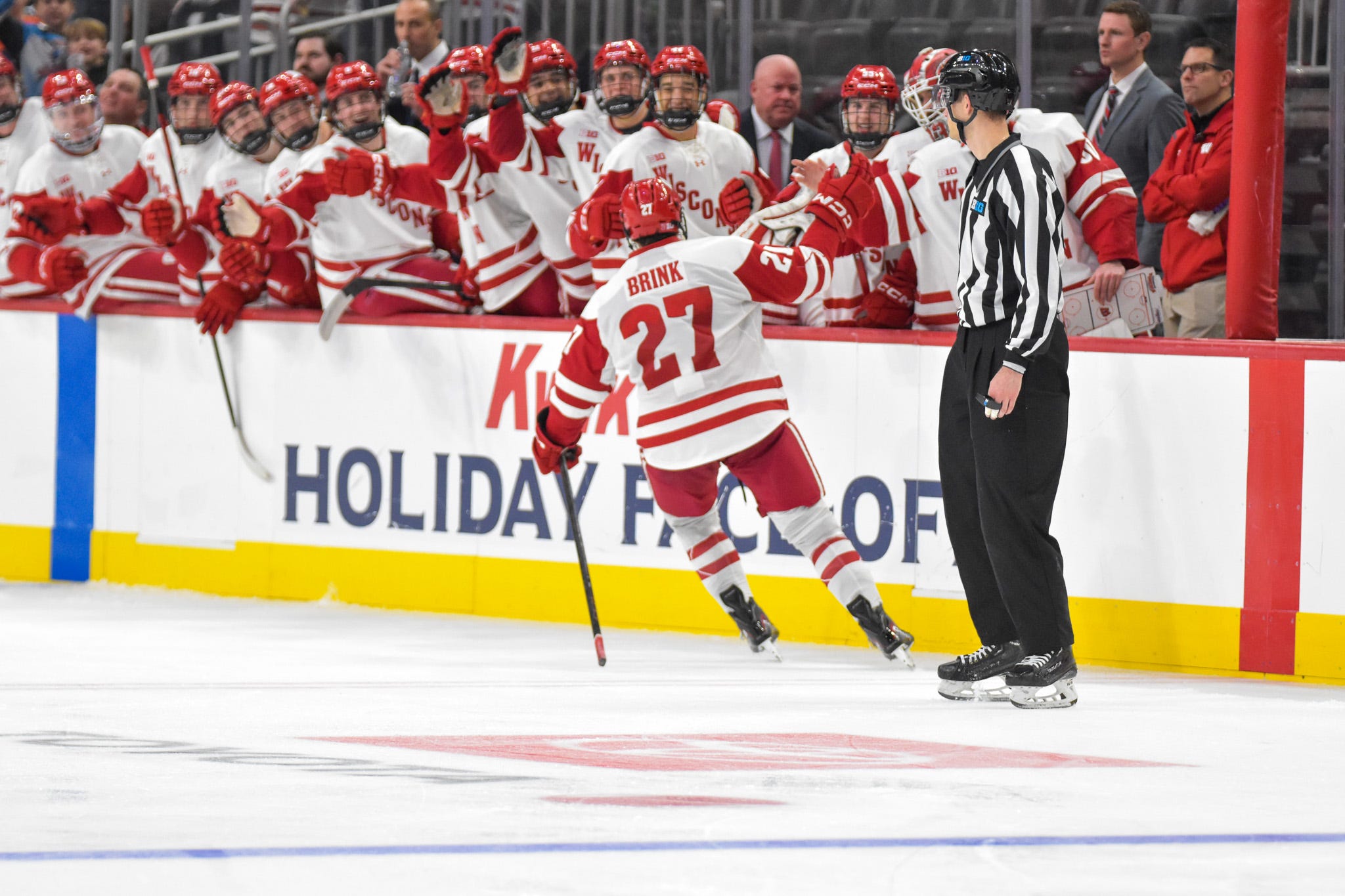 Despite the adversity, Wisconsin earned a hard-fought 3-2 victory and a spot in the 2025 Kwik Trip Holiday Face-Off championship game on Monday night.