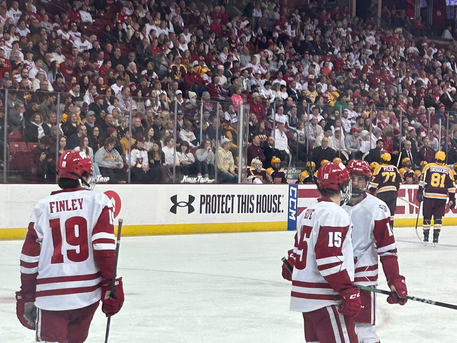 It took an intermission break, but not long after, Finley found the net again. On a power play, Badgers alternate captain Gavin Morrissey collected the puck along the half boards. The sophomore skated into the corner, finding the perfect angle for a cross-ice pass.